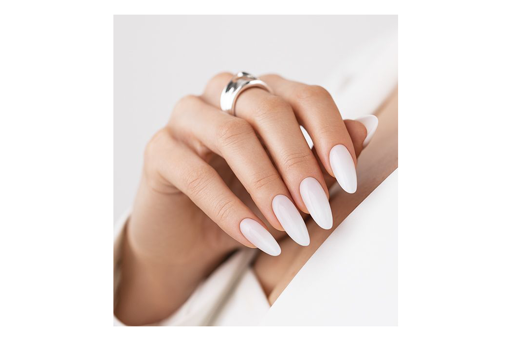 Delicate manicure in milky white color